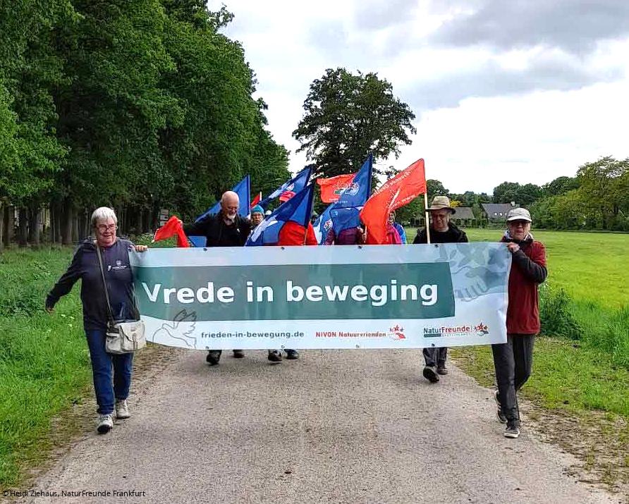Angefangen hatte Frieden in Bewegung 2025 am geschichtsträchtigen Friedenspalast in Den Haag (NL). An dieser Stelle nochmals herzlichen Dank an die niederländischen NaturFreunde von NIVON für die tolle Organisation in den Niederlanden. Der internationale Austausch mit circa 40 niederländischen NaturFreund*innen in den ersten Tagen war für alle deutschen Teilnehmenden sehr wertvoll. Die bei Frieden in Bewegung entstandenen Verbindungen werden auch über diese Friedenswanderung hinaus bestehen bleiben.