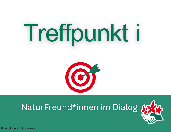 In der Veranstaltungsreihe Treffpunkt i möchte der Bundesvorstand sowohl mit Mitgliedern als auch mit Interessierten über einzelne Positionen ins Gespräch kommen. Dabei stellen ein oder mehrere Vorstandsmitglieder in einer Videokonferenz zuerst eine NaturFreunde-Position vor und stehen den Teilnehmer*innen dann für Fragen und Diskussionen zur Verfügung. Ein zweistündiges Zeitfenster soll möglichst viel Informationsvermittlung und Dialog ermöglichen.
